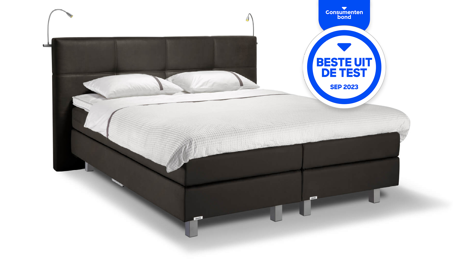 Avek bestaat 90 jaar! Al 90 jaar lang maken wij, in onze eigen fabriek in Friesland, met zorg en vakmanschap de beste bedden en boxsprings. Speciaal vanwege ons 90 jarig jubileum introduceren wij Avek Boxspring Ninety. Een luxe drielaags boxspring met vele extra’s, zoals de nieuwe Ninety achterwand, een extra dikke topmatras met zones, een gratis set LED leeslampjes, en een gratis set in- en uitstapverlichting. Jouw voordeel bedraagt maar liefst 550 Euro. Je hebt al een zeer complete Ninety boxspring voor 2.995 euro!